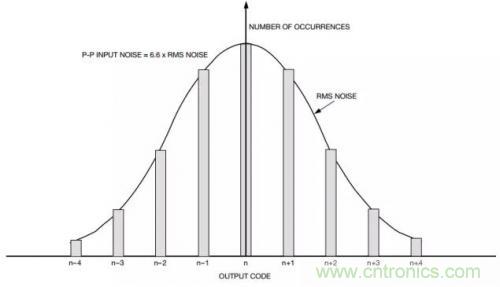 碼字分布一般為高斯分布。均方根噪聲是通過從該直方圖產(chǎn)生的曲線計(jì)算出的,曲線的寬度決定均方根噪聲。高斯曲線的分布是從負(fù)無窮大到正無窮大。然而,99.99%的碼字出現(xiàn)在6.6倍均方根噪聲范圍內(nèi)。因此,峰峰值噪聲為均方根噪聲的6.6倍。