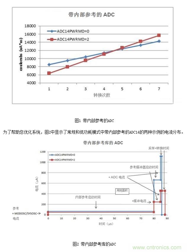電源模式(ADC14PWRMD位)按照最大采樣率調(diào)整電流消耗,主要是通過在選擇內(nèi)部參考時(shí)調(diào)整所用的緩沖器。與SYCOSC情況一樣,如果你在ADC14中使用較慢的時(shí)鐘,可以考慮將低功耗模式(ADC14PWRMD = 2)作為時(shí)鐘源(參見設(shè)備數(shù)據(jù)表了解具體的時(shí)鐘要求)。