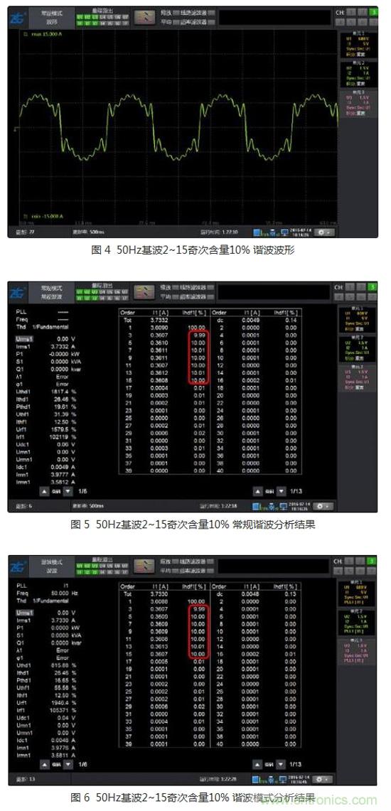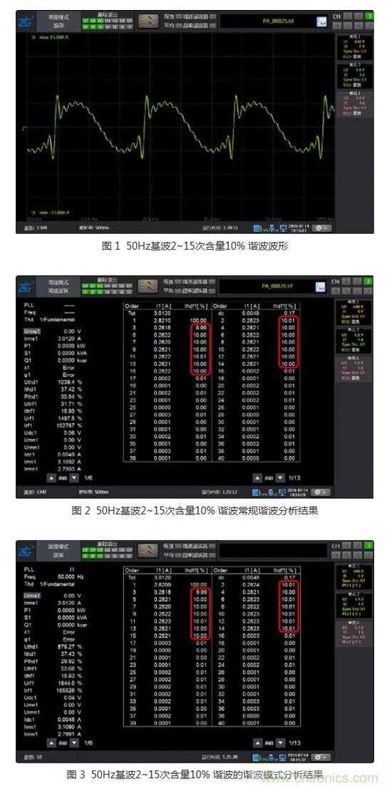 如圖 1所示包含諧波的50Hz信號(hào)波形,常規(guī)諧波和諧波模式諧波均能得到正確的諧波含量,并且精度很高。