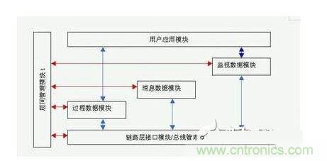 由于在MVB系統(tǒng)中,過程數(shù)據(jù),消息數(shù)據(jù),監(jiān)視數(shù)據(jù)是三種不同的通訊機制,因此,MVB系統(tǒng)軟件的模塊設計如圖6。