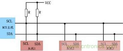 物理結(jié)構(gòu)上,I2C總線只有兩根雙向信號線,一根是數(shù)據(jù)線SDA,另一根是時鐘線SCL。