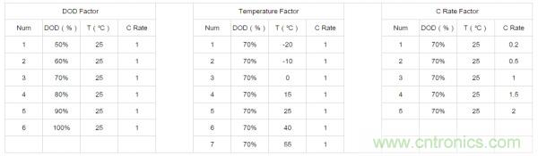 在循環(huán)測(cè)試上可以根據(jù)DOD、溫度、倍率這三個(gè)重要影響因素設(shè)計(jì)一組“單因素實(shí)驗(yàn)”。