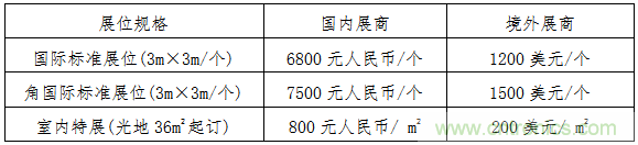 注:A、標準展位提供:三面圍板、楣板制作、洽談桌一張、折椅兩把、射燈兩只、10A/220V插座一個。B、室內(nèi)特裝展區(qū)只提供光地,不提供任何配置,展商自行負責展位搭建布置的各種費用。
