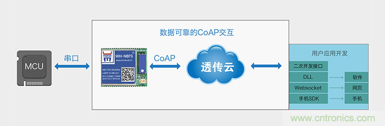 不僅優(yōu)化模塊內(nèi)部的嵌入式軟件和AT指令的易用性,更是站在用戶角度考慮端到云的應(yīng)用場景,提供透明傳輸UDP模式,提供CoAP通訊組件,嚴格的重傳機制,保障數(shù)據(jù)發(fā)出必答,不達報警,更有透傳云服務(wù),讓用戶零編程即可使用NB-IoT搭建系統(tǒng)。