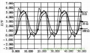 從圖中看出,信號線加長后,由于傳輸線的等效電阻、電感和電容增大,傳輸線效應明顯加強,波形出現(xiàn)振蕩現(xiàn)象。因此在高頻PCB布線時除了要接匹配電阻外,還應盡量縮短傳輸線的長度,保持信號完整性。