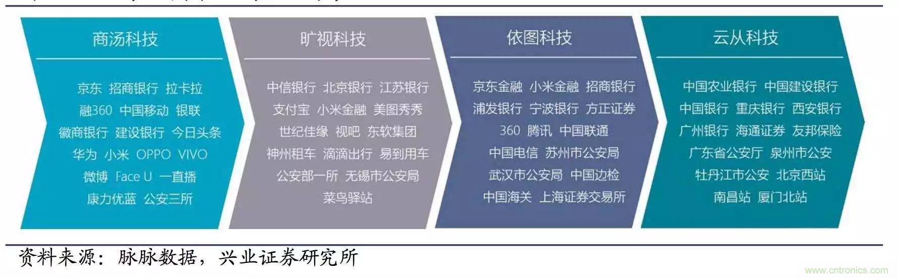 自研技術(shù)方面,谷歌在2012年獲得人臉識(shí)別解鎖手機(jī)的專利;蘋果獲得相應(yīng)專利的時(shí)間為2015年。在國(guó)內(nèi)市場(chǎng),BAT也在人工智能領(lǐng)域奮力競(jìng)爭(zhēng)。資本方面,把深度學(xué)習(xí)算法運(yùn)用到人臉識(shí)別上目前走在最前列的是百度等互聯(lián)網(wǎng)公司。同時(shí),很多創(chuàng)業(yè)型企業(yè)技術(shù)也不弱,比如商湯科技(Sense Time)、曠視科技、依圖科技、云從科技四家獨(dú)角獸公司。這些公司無(wú)論是從技術(shù)上還是從應(yīng)用能力上都 相對(duì)成熟,獲得了資本市場(chǎng)的高度重視。下面對(duì)比四家人臉識(shí)別獨(dú)角獸公司的技術(shù)和應(yīng)用場(chǎng)景。