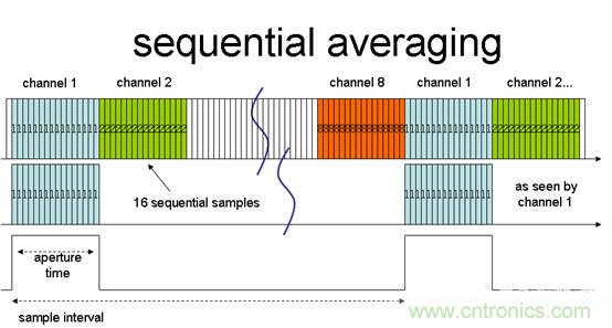 這種傳統(tǒng)的對(duì)單一通道信號(hào)進(jìn)行多次轉(zhuǎn)換后才轉(zhuǎn)到下一個(gè)通道的平均模型被稱(chēng)為序列平均。這種方法存在一些限制,主要問(wèn)題在于會(huì)降低多通道環(huán)境中的可用采樣率,包括被平均的通道和序列中不需要平均的通道。