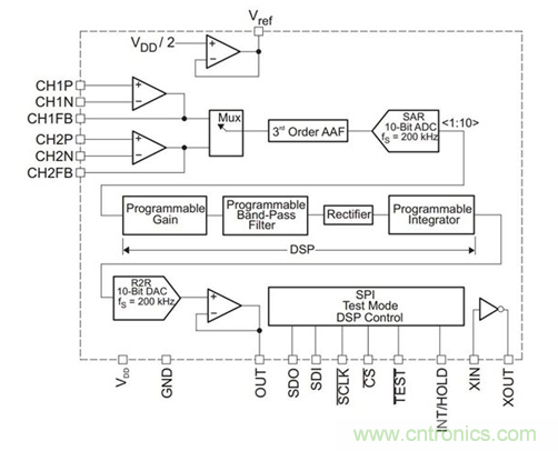表 2 顯示了各種頻率輸入信號的輸出信號振幅的測試數據。 已對每個器件的帶通濾波器進行編程,使其具有 6.94kHz 的中心頻率,因此應抑制遠離該中心頻率的輸入信號。
