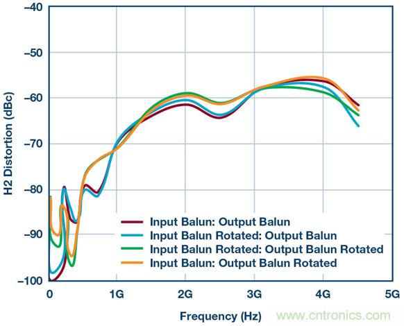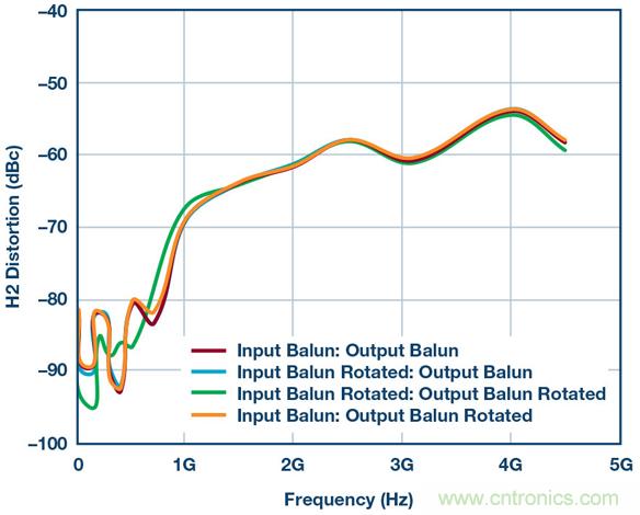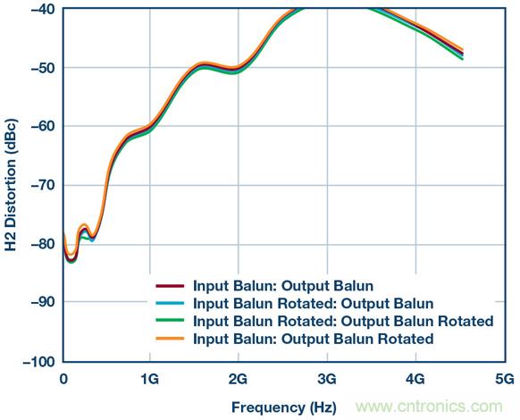 圖6.使用供應(yīng)商1B巴倫和不同巴倫方向重新測(cè)試HD2性能。