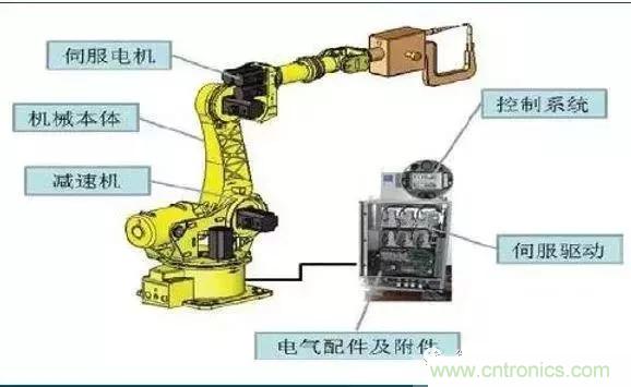 【導讀】工業(yè)機器人廣泛使用在產(chǎn)業(yè)制造上,汽車制造、電器、食品等,能替代反復機器式操縱工作,是靠本身動力和控制才能來實現(xiàn)種種功用的一種機器。它能夠承受人類指揮,也能夠按照事先編排的程序運轉(zhuǎn)。如今我們講講工業(yè)機器人基本主要構(gòu)成部分。