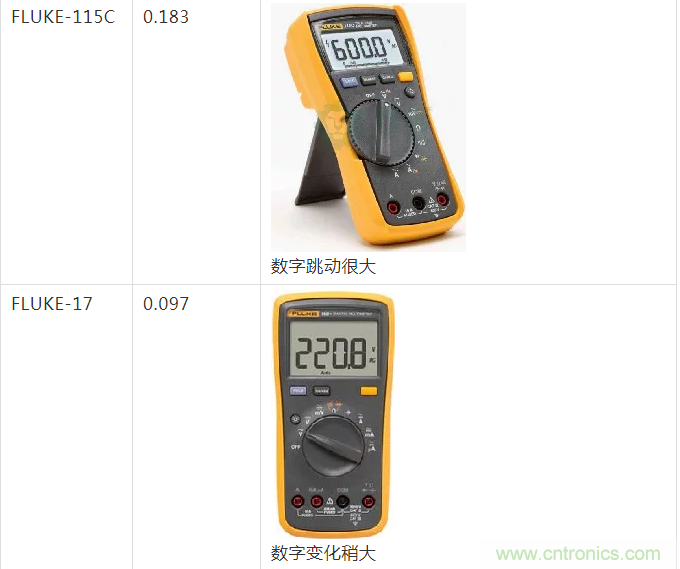 表格:不同數(shù)字萬(wàn)用表測(cè)量1Vrms隨機(jī)噪聲的讀數(shù)
