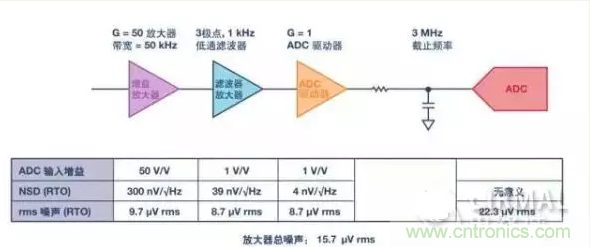 其次,即使在只有一個(gè)ADC和一個(gè)驅(qū)動(dòng)放大器的簡單情況下,權(quán)衡噪聲并確定其對(duì)系統(tǒng)的影響仍是有利的。通過具體數(shù)值可以更清楚地了解其中的理由。