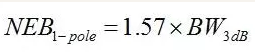 對(duì)于單極點(diǎn)低通濾波器,它是–3dB帶寬的1.57倍,寫成公式就是:
