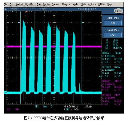 由以上的試驗(yàn)證明,TE connectivity公司研發(fā)出的LVR PPTC和功率電阻集成在一起的組件既可以滿足馬達(dá)的保護(hù)時間的要求,又可以在一次完整的磨制豆?jié){的周期內(nèi)不誤動作,達(dá)到了設(shè)計和保護(hù)要求。