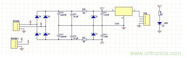 這是電源部分:其中的L7805穩(wěn)出5V電壓是給我的電平指示器供電用的,當(dāng)然,L7805要不要都可以,這看個人需求!