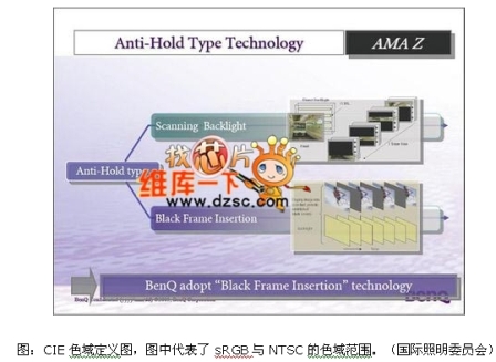 一般在PC監(jiān)視器應(yīng)用方面,多以sRGB為標(biāo)準(zhǔn)的色域定義,sRGB是微軟作業(yè)系統(tǒng)所提供的標(biāo)準(zhǔn)定義,而在AV應(yīng)用方面,采用的多是NTSC定義,在顏色涵蓋度方面要比sRGB來得廣。