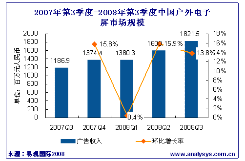 - 2008年第3季度戶外電子屏廣告市場(chǎng)收入同比增長53.5%