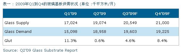 假定玻璃基板供貨商在第三季持續(xù)增加現(xiàn)有產(chǎn)線產(chǎn)能,供給則將成長8%,因此預(yù)計未來兩季的供給率還是低于健康狀況。但預(yù)計到了2009年Q4,玻璃基板的供需狀況將會回到正常水位。