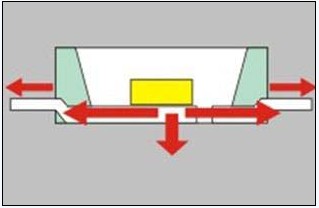 傳統(tǒng)的貼片產(chǎn)品熱傳導路線及方式如下圖2: