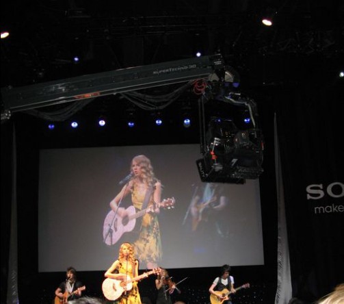 索尼董事長兼社長兼CEO霍華德·斯金格在兼作發(fā)布會現(xiàn)場的索尼展位上如此宣言之后,在美國備受年輕人歡迎的歌手Taylor Swift走上舞臺。會場上用能夠拍攝三維(3D)影像的專業(yè)攝像機拍攝了Swift的現(xiàn)場演奏,并在會場的屏幕上進(jìn)行了3D現(xiàn)場直播。佩戴著3D影像用眼鏡的觀眾同時觀看了現(xiàn)場表演和3D影像。