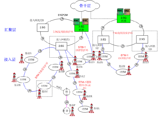 圖1中國移動2G基站回傳所使用的SDH/MSTP技術(shù)方案