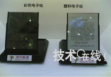 此次三星帶來了獨自開發(fā)的塑料和彩色電子紙。塑料電子紙為16階色,彩色電子紙只能顯示4%的NTSC色域,所用材料為塑料,并將門電路集成到塑料基板上,大小為10.1英寸。塑料電子紙和彩色電子紙的厚度分別為0.7mm和0.5mm。據(jù)三星的工作人員介紹,其電子紙均從E ink采購電泳層,然后生產(chǎn)出半成品后,銷售給其他電子書廠商。