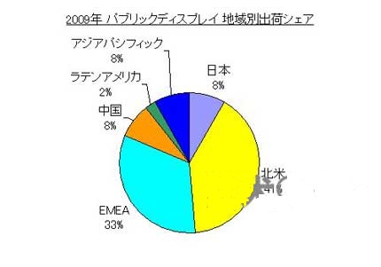圖2:不同地區(qū)的公共顯示器供貨份額(2009年)