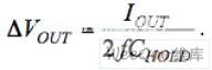 在第二階段,C1+連接到輸出,放電電流(電流大小與前面的充電電流相同)通過C1流到負載。在這個階段,輸出電容電流的變化大約為2IOUT。盡管這個電流變化應該能產生一個輸出電壓變化為2IOUTESRC_HOLD,使用低ESR的陶瓷電容使得這種變化可以忽略不計。此時,CHOLD按下面的電量線性電位充電︰