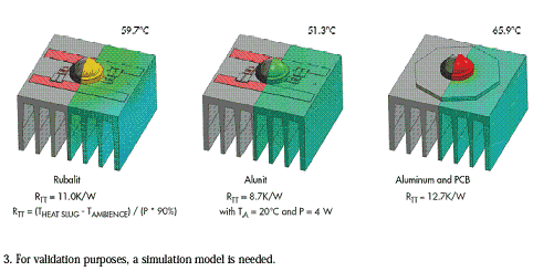 將熱點(diǎn)的溫度降低6k意味著可顯著減少LED的壓力。相同形狀Rubalit組件的總熱阻至少比鋁要好13%。使用Alunit可將CeramCool性能提升最少31%。如果考慮28K的熱降,則Rubalit和Alunit這兩種陶瓷材料帶來的實(shí)在的好處更要顯著得多。