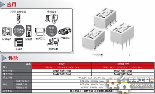 同樣,在精密電子元器件領域具有世界級技術實力的歐姆龍,利用其獨特的傳感與控制技術持續(xù)實現(xiàn)了繼電器、開關、轉接器等電子產品的小型化、高性能和節(jié)能特性,也必將為西部高端電子元器件應用帶來更多新選擇。歐姆龍電子部件的展品包括:FPC連接器、IDC連接器等(應用領域從移動設備到產業(yè)機器);高可靠性的繼電器,可用于通信基礎設施、數(shù)碼家電、加工機床等設備;還有可應用于產業(yè)設備、家電、車載、娛樂相關設備等各種領域的開關產品。最近,該公司高5.2mm×寬6.5mm×長10mm的超小型表面安裝繼電器G6K-Y系列在中國實現(xiàn)了量產。這種繼電器號稱具有世界最小級別的封裝面積與高度,適用于高密度封裝,并實現(xiàn)最低功耗100mW。[page]