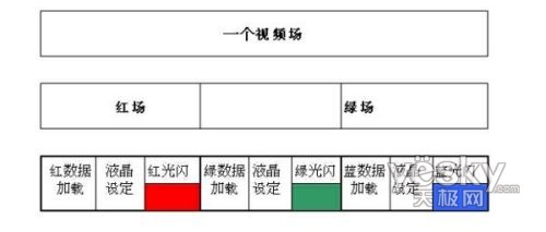 想要直接用RGB的LED來取代濾色片看上去好像很簡(jiǎn)單,其實(shí)是不可能的。因?yàn)闉V色片是把每一個(gè)像素都分成三種不同顏色的子像素,如果直接用三種顏色的LED來取代濾色片,就必須采用小到和子像素尺寸一樣大的LED來照射每一個(gè)子像素,才不會(huì)使紅光照到綠光的子像素上。這樣,LED的個(gè)數(shù)就要幾百萬個(gè)之多。為維持像素?cái)?shù)不變,唯一的方法是重復(fù)使用這些像素,也就是采用時(shí)分復(fù)用制。這樣只要順序地發(fā)射出紅光、綠光、藍(lán)光,同時(shí)控制每個(gè)像素的薄膜晶體管(TFT),使其相應(yīng)地按照該像素在這種顏色時(shí)所應(yīng)當(dāng)具有的的強(qiáng)度來開啟液晶光閥。但是,要順序地發(fā)出紅、綠、藍(lán)三種顏色,并能形成一個(gè)彩色的視頻圖象,就必須利用人眼的視覺殘留作用。只要這三種顏色順序重復(fù)的周期小于人眼的視覺殘留時(shí)間,就可以在人們的大腦中形成一個(gè)彩色的圖象。視覺殘留時(shí)間實(shí)際上就是電視的場(chǎng)頻周期,在PAL制中為五十分之一秒。這也就要求在五十分之一秒的時(shí)間內(nèi)必須完成紅、綠、藍(lán)三個(gè)圖象的顯示。因此,這種方式被稱為“場(chǎng)順序”體制,也有人稱之為“色順序”體制。
