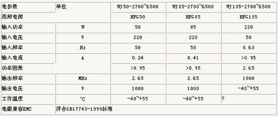 無(wú)極燈電參數(shù)