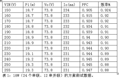 在AX2028_TUBE_18W非隔離應(yīng)用設(shè)計(圖4)中,LED光源陣列設(shè)計為0.06W白光LED(SMT或草帽燈)24個串聯(lián)、12串并聯(lián)的方案,驅(qū)動288個小功率WLED,總功率為18W。