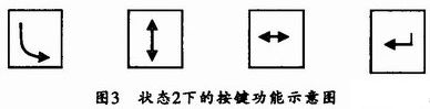 在狀態(tài)1及狀態(tài)3下,按鍵的功能比較容易理解,這里來對狀態(tài)2下的按鍵功能進行說明,圖3所示依次為1、2、3、4鍵。其中按鍵1可進入設(shè)定狀態(tài),上面一行顯示參數(shù)的值,下面一行顯示當前是第幾個參數(shù);按鍵2用于對當前閃爍數(shù)據(jù)位進行加1操作,可依次從0增加到9,當增加到10時,又自動變?yōu)?;按鍵3用于改變設(shè)定的位,每按下一次,閃爍數(shù)據(jù)位向后移動一位,當移動到第四位再按下此鍵時,閃爍位變?yōu)榈谝晃唬话存I4用于確認參數(shù)的設(shè)定和保存。