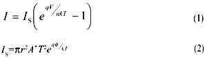 視頻電阻是伏安特性曲線在原點(diǎn)及其附近的斜率,它反映了勢壘高度的相對變化,決定著在零偏置或一定偏置條件下低電平射頻到直流的功率轉(zhuǎn)換效率。它可由肖特基勢壘二極管的伏安特性來表示[1]