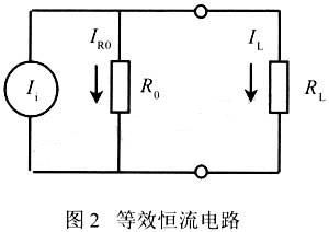 恒流源的工作原理如圖2所示。它由理想電流ii和輸出電阻ro組成。電流源的輸出電流ii=iro+il,如果ro阻值無窮大,此時(shí)iro等于零,即負(fù)載rl在任何值時(shí),il=ii。事實(shí)上ro不可能等于無窮大。ro越大,il越接近ii,電源的穩(wěn)流性能越好[3]。