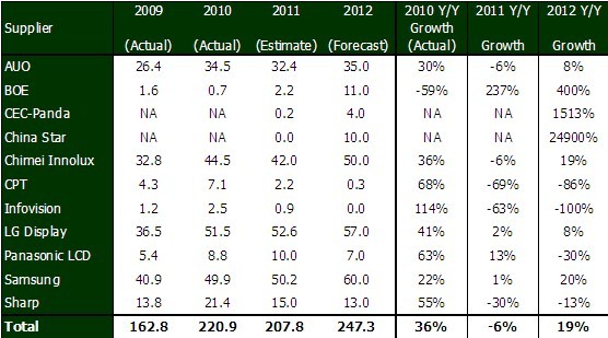 Source: DisplaySearch Quarterly Large Area TFT LCD Shipment Report