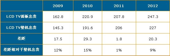 - 2010年電視面板出貨與整機(jī)出貨差距達(dá)到了15%