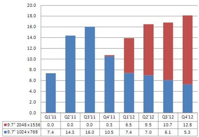 - 2011年,LG Display供給了54%的9.7寸面板,三星為40%