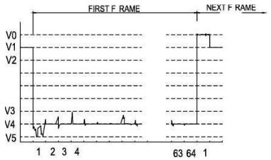 其中,Cr是對比度,N1是像素點未顯示時的光線透過率,N2是像素點顯示時的光線透過率。對比度越大,顯示就越清楚,反之,則顯示暗淡不清。LCD的對比度與其自身的特性關(guān)系較大,如電光特性曲線的陡度等。從電路驅(qū)動的角度來講對比度的控制主要受下面幾個參數(shù)的影響。