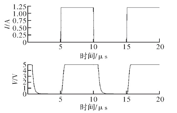 為驗證文中提出的電流采樣電路的功能,結(jié)合滯環(huán)控制電路及外部負載在Cadence中進行了仿真。圖5為輸入電壓20 V時采樣電流、電壓與負載電流的關(guān)系。由圖可見,采樣電流與采樣電壓隨負載電流同相周期性變化,周期約為1.2μs.
