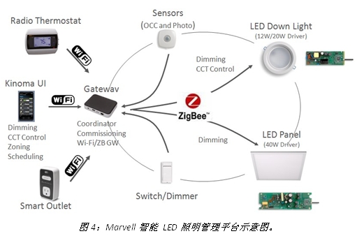 Marvell新型智能LED照明平臺體現(xiàn)了Marvell對綠色照明應(yīng)用的前瞻性眼光,它的目標(biāo)是為OEM提供一個完整的軟硬件解決方案,使得他們可以用更少的時間和更低的成本來開發(fā)產(chǎn)品并投入市場。同時,該平臺是一個綠色節(jié)能方案,它包含了基于Marvell的創(chuàng)新LED驅(qū)動芯片的發(fā)光二級管(LED)照明組件以及ZigBee網(wǎng)絡(luò)、ZigBee/WiFi無線網(wǎng)關(guān)以及智能照明軟件。這些組件共同提升系統(tǒng)能效,并保證高質(zhì)量LED照明以促進(jìn)環(huán)保和便捷的生活方式。