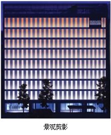 于2010年整體煥然一新的羅姆日本京都站前大樓景觀燈,整座大樓采用羅姆自產(chǎn)的LED照明等產(chǎn)品。大樓正面的墻面縱橫組合安裝了羅姆生產(chǎn)的全彩LED和可進(jìn)行色溫微細(xì)調(diào)整的LED模塊,實(shí)現(xiàn)了如同透過(guò)紙窗一樣的柔和光線。該設(shè)計(jì)根據(jù)季節(jié)對(duì)色溫進(jìn)行微妙的調(diào)整,表達(dá)了日本細(xì)膩的季節(jié)感,與京都街道風(fēng)格融為一體。