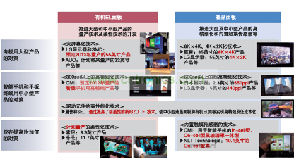 2012年,SMD和LG顯示器計(jì)劃量產(chǎn)電視用55英寸面板,友達(dá)光電(AUO)和奇美電子(CMI)計(jì)劃量產(chǎn)智能手機(jī)用中小型面板。日本廠商中,日本顯示器正在以2013年量產(chǎn)為目標(biāo)。索尼和松下也將共同開發(fā)大尺寸面板。隨著各競爭公司紛紛表明涉足,“如果美國蘋果等大客戶有需求,夏普應(yīng)該也不會拒絕”(顯示器相關(guān)分析師)。