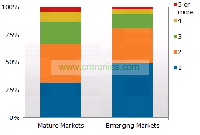 該報(bào)告還發(fā)現(xiàn),在成熟市場家庭平均擁有2.4臺電視,而在新興市場平均每戶為1.8臺。成熟市場中,超過三分之二的家庭有一臺以上電視,但在新興市場近一半的家庭只有一臺電視。鑒于平板電視持續(xù)推出新機(jī)種、價(jià)格益加實(shí)惠、以及消費(fèi)者對高品質(zhì)、大屏幕和高清晰度電視的消費(fèi)欲望,和成熟市場的消費(fèi)者一樣,越來越多的新興市場消費(fèi)者購買平板電視(主要是液晶電視)來汰換他們現(xiàn)有的舊款式電視。