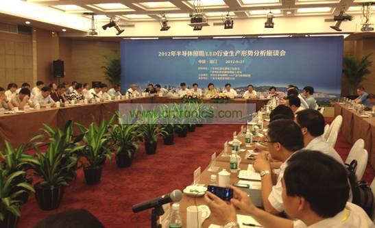 由中國半導體照明/LED產(chǎn)業(yè)與應用聯(lián)盟主辦、三安光電股份有限公司承辦的“2012年全國半導體照明/LED行業(yè)生產(chǎn)形勢座談會”8月31日在廈門召開。工業(yè)和信息化部消費品工業(yè)司、電子信息司、福建省信息化局、廈門市經(jīng)濟發(fā)展局有關領導以及全國照明和LED領域60多家企業(yè)負責人、中國照明電器協(xié)會、中國光學光電子行業(yè)協(xié)會、福建省光電子行業(yè)協(xié)會、廈門市光電子行業(yè)協(xié)會等相關行業(yè)組織出席座談會。