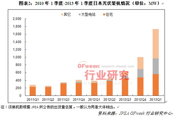 導(dǎo)讀: 根據(jù)日本經(jīng)濟貿(mào)易產(chǎn)業(yè)省公布數(shù)據(jù)顯示,2012年日本光伏新增裝機2.5GW,其中住宅項目為1.6GW,占比65%;2013年第一季度,日本新增裝機1.7GW。