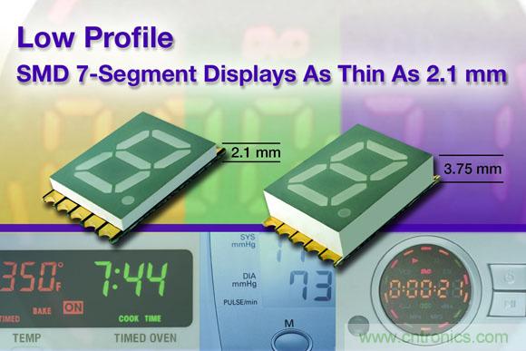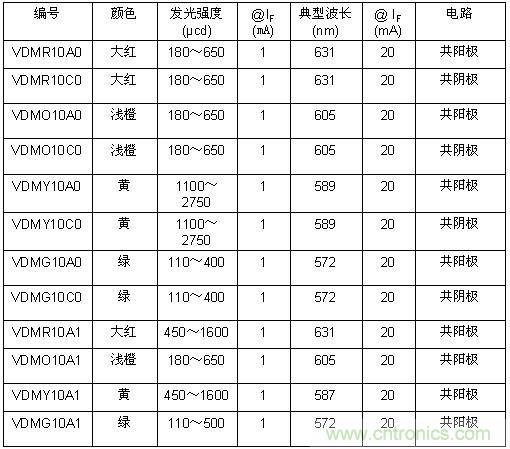 今天推出的器件采用發(fā)光均勻、無污點(diǎn)的數(shù)碼管和灰色封裝表面。VDMx10A1系列LED數(shù)碼管采用共陽極配置,封裝高度只有2.1mm。VDMx10x0系列器件提供共陽極和共陰極配置,封裝高度為3.75mm。