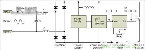 后沿切相調光器一般包括過零檢測電路,計時器及MOSEFT開關。