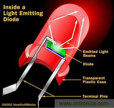 【導(dǎo)讀】發(fā)光二極管,通常稱為LED,是電子學(xué)世界真正的無名英雄。基本上,發(fā)光二極管只是一個(gè)微小的電燈泡。但不像常見的白熾燈泡,它沒有燈絲,又不會(huì)特別熱。單單是由半導(dǎo)體材料里的電子移動(dòng)使其發(fā)光。